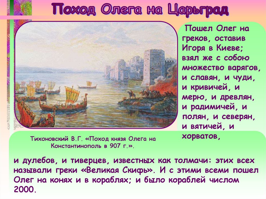 Тихоновский В.Г. «Поход князя Олега наКонстантинополь в 907 г.».