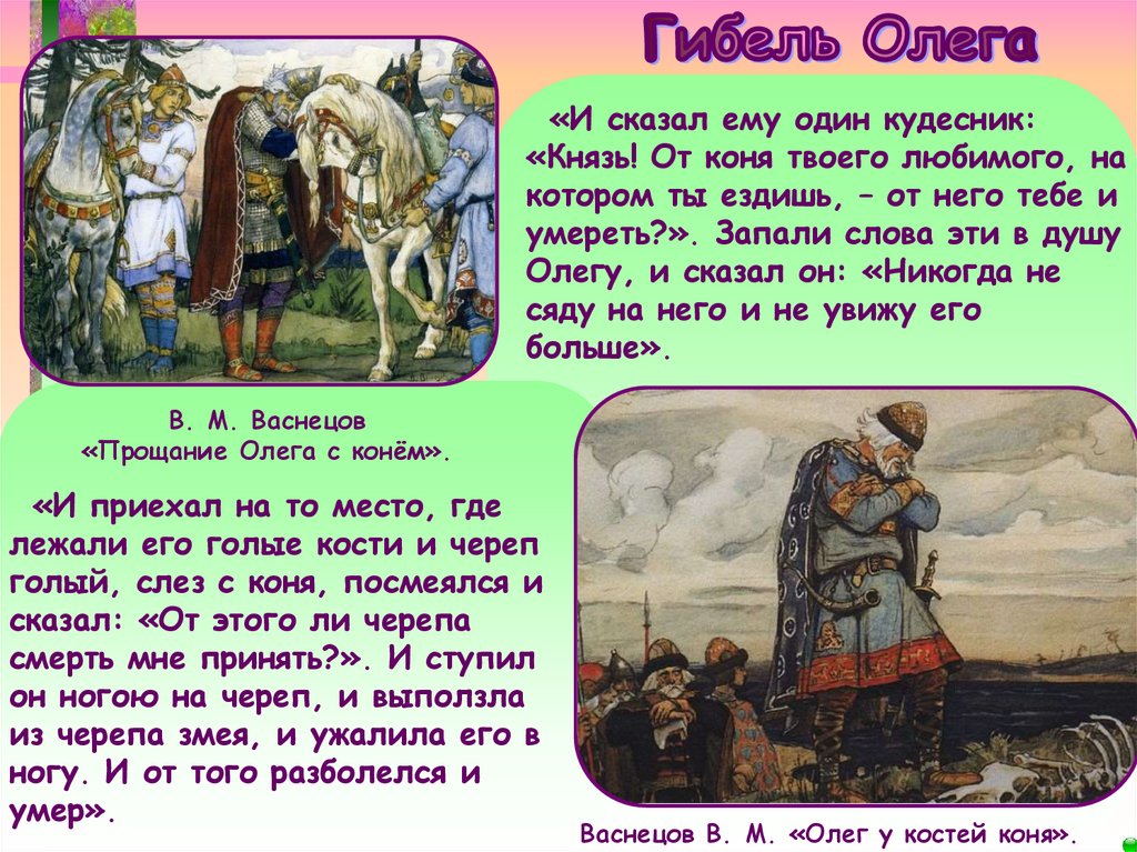 «И сказал ему один кудесник:«Князь! От коня твоего любимого, на
