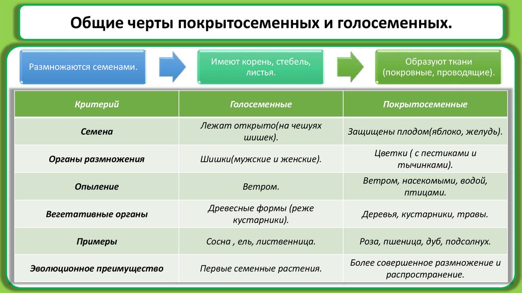 Общие черты покрытосеменных и голосеменных.Размножаются семенами.