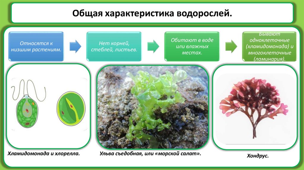 Не имеют настоящих тканей и органов (нет корней, стеблей, листьев).
