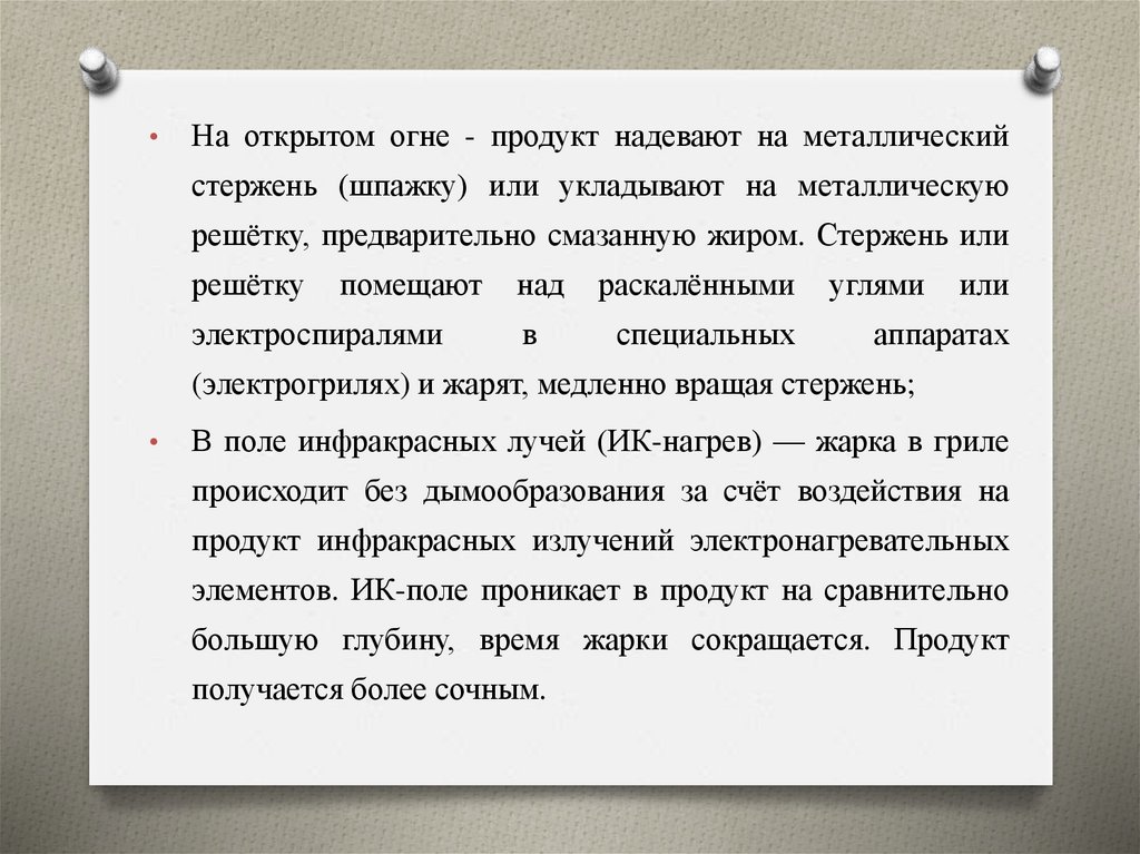Способы жарки:Основной – жарят в небольшом количестве жира 4-5% , жир