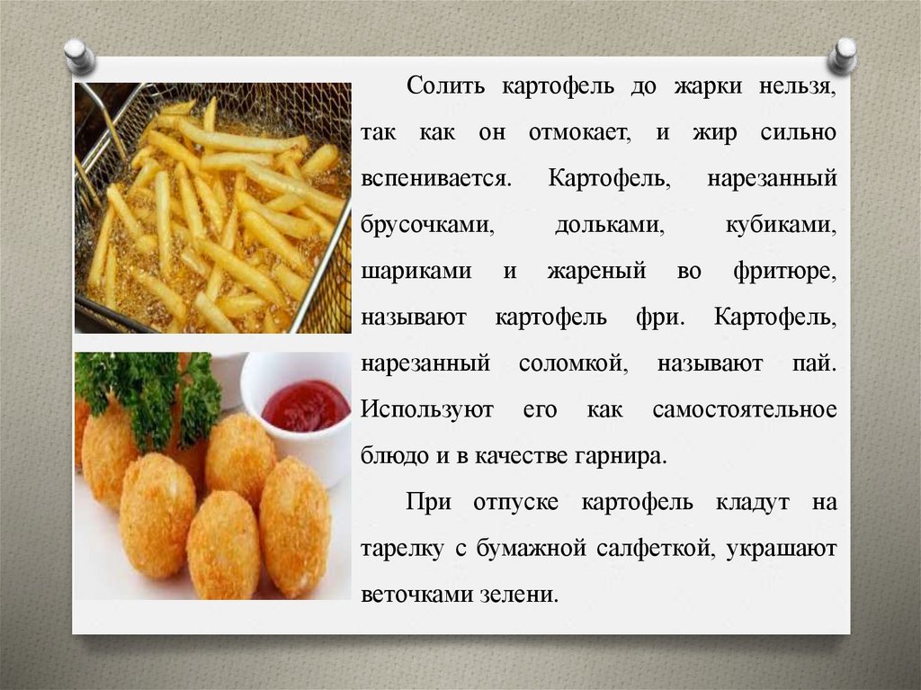 Картофель нарезают брусочками соломкой,дольками, кубиками, шариками, стружкой, промывают