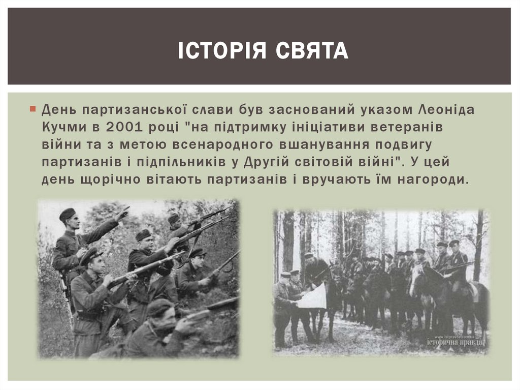 ІСТОРІЯ СВЯТАДень партизанської слави був заснований указом Леоніда