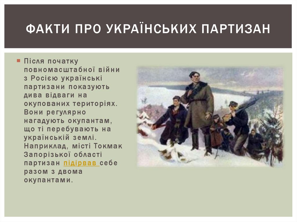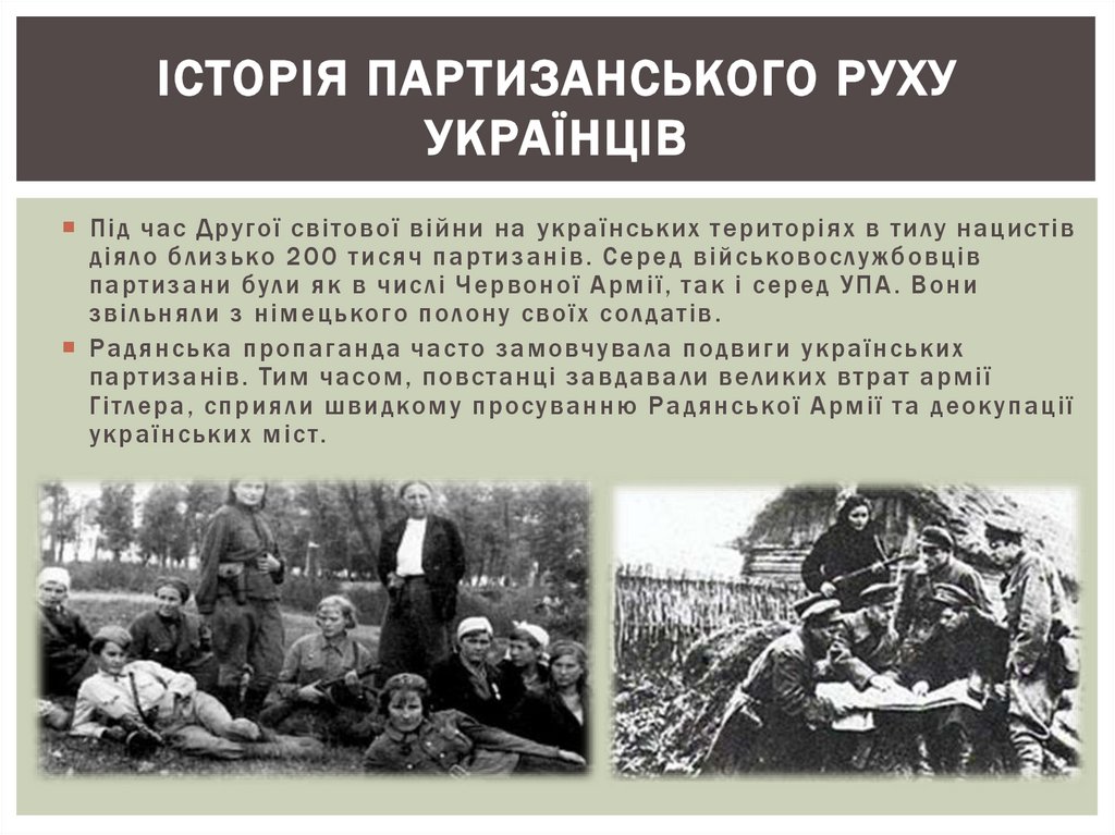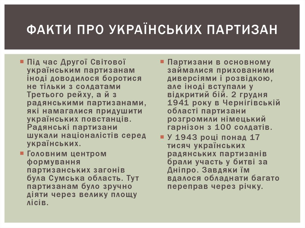 ФАКТИ ПРО УКРАЇНСЬКИХ ПАРТИЗАНПід час Другої Світової