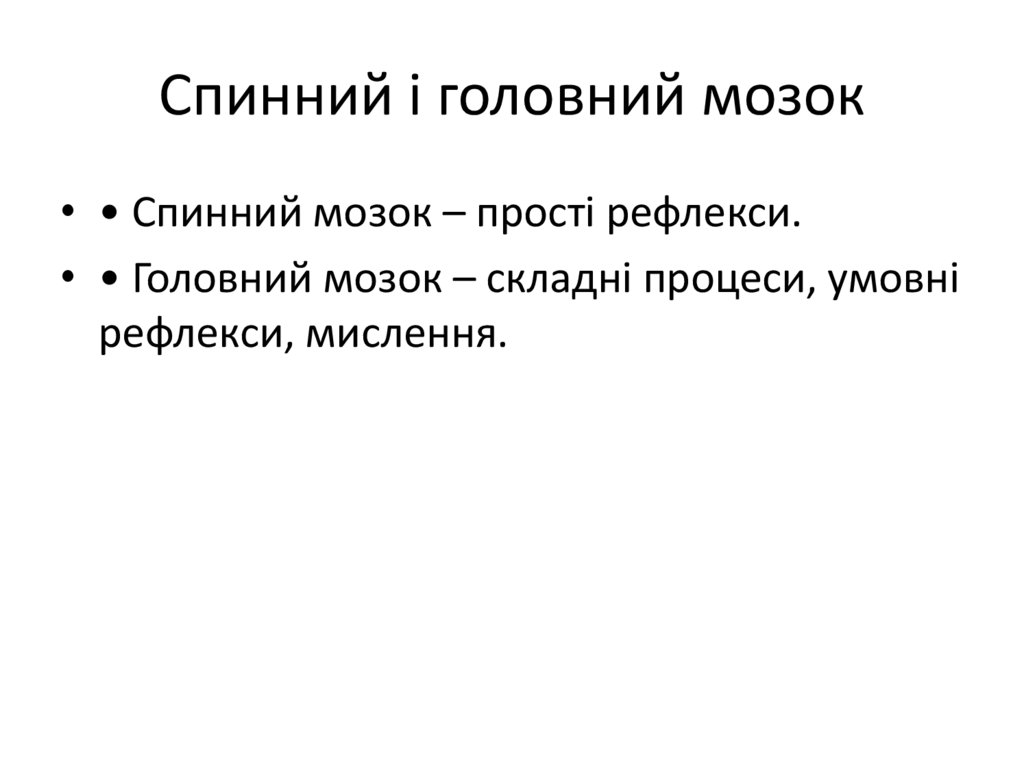 Спинний і головний мозок• • Спинний мозок – прості рефлекси.