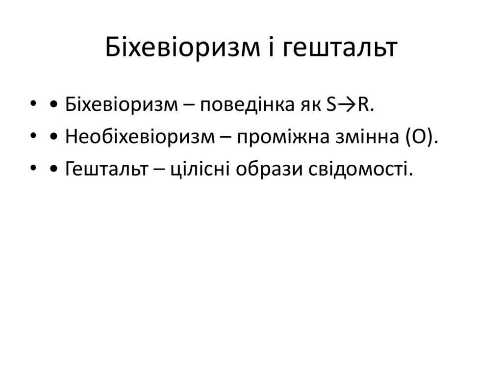 Біхевіоризм і гештальт• • Біхевіоризм – поведінка як S→R.