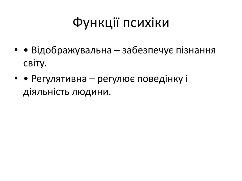 Функції психіки• • Відображувальна – забезпечує пізнання