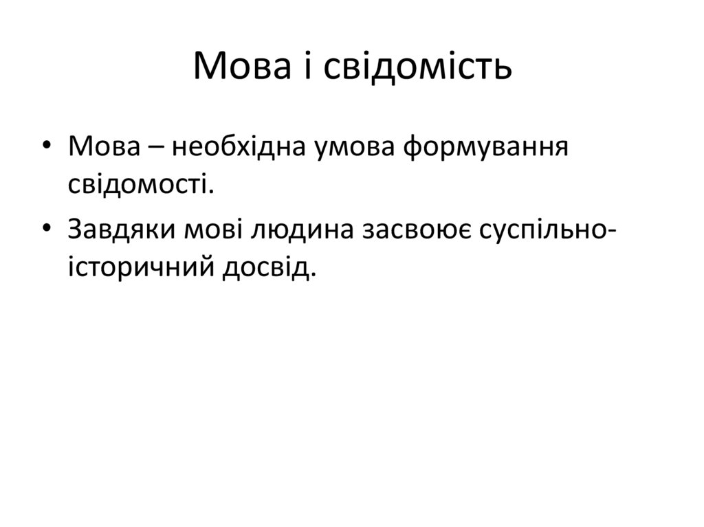 • Завдяки мові людина засвоює суспільноісторичний досвід.