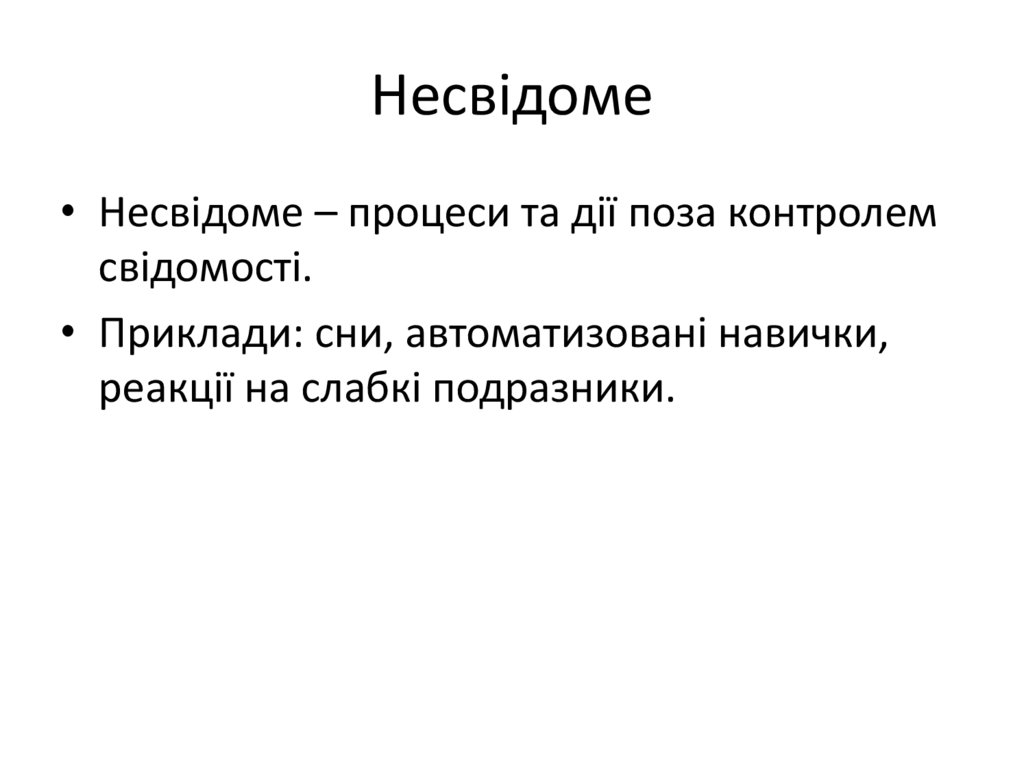 Несвідоме• Несвідоме – процеси та дії поза контролем
