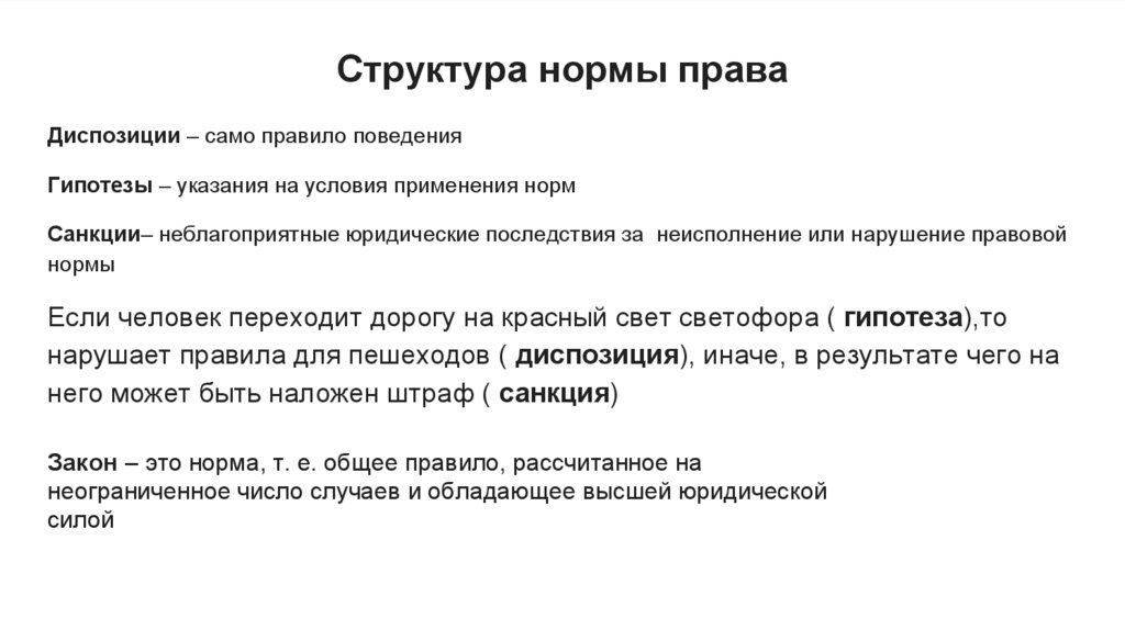 Структура нормы праваДиспозиции – само правило поведения