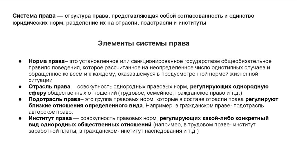 Элементы системы права