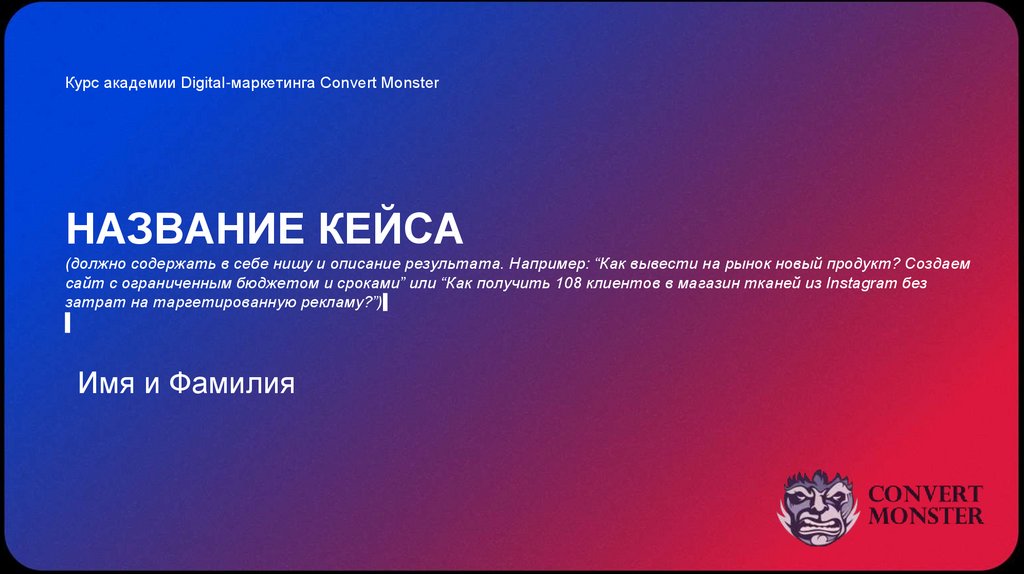 Курс академии Digital-маркетинга Convert MonsterНАЗВАНИЕ КЕЙСА