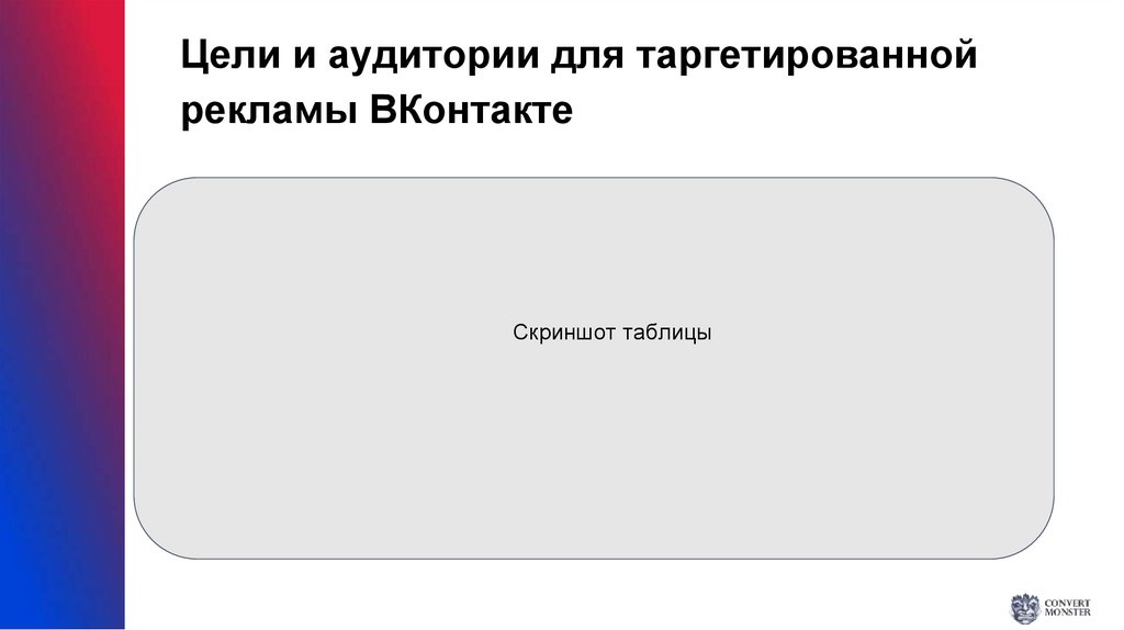 Цели и аудитории для таргетированнойрекламы ВКонтакте