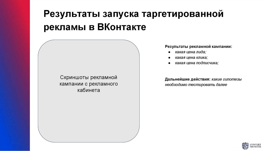 Результаты запуска таргетированнойрекламы в ВКонтакте