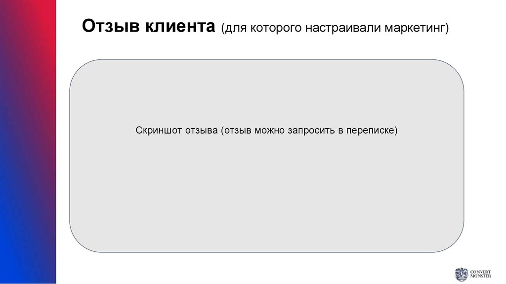 Отзыв клиента (для которого настраивали маркетинг)Скриншот отзыва (отзыв можно запросить в переписке)