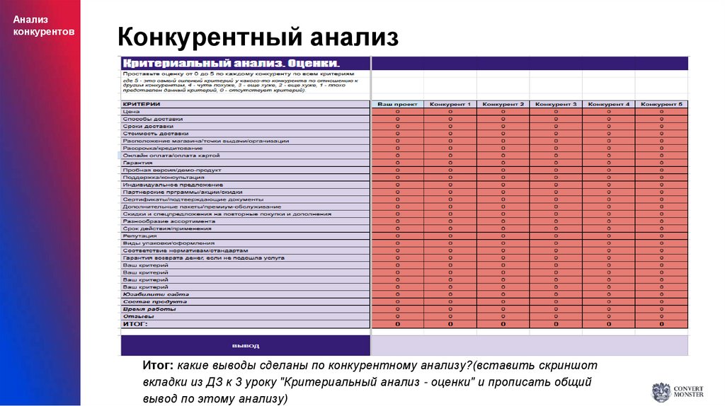 Итог: какие выводы сделаны по конкурентному анализу?(вставить скриншот