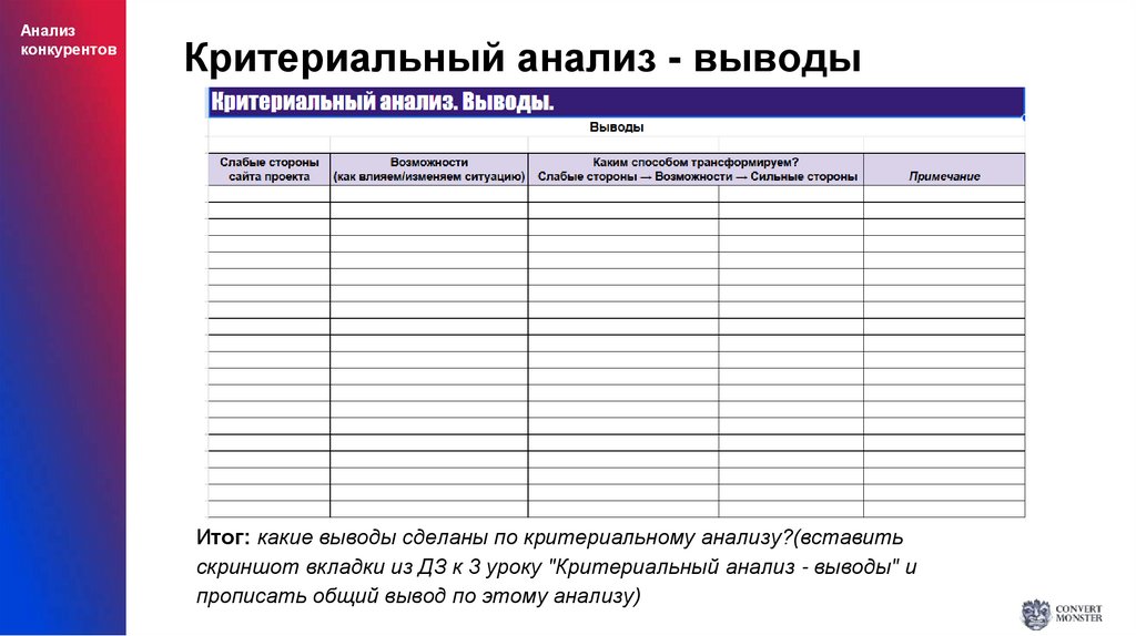 скриншот вкладки из ДЗ к 3 уроку "Критериальный анализ - выводы" и