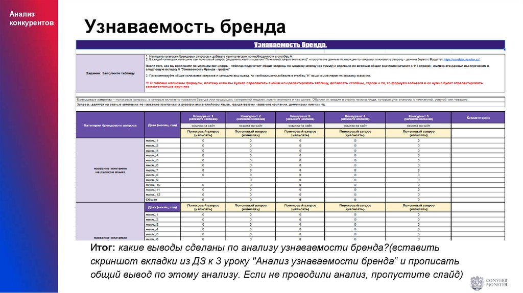 Итог: какие выводы сделаны по анализу узнаваемости бренда?(вставить