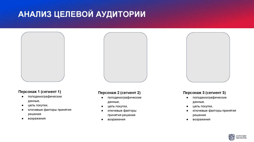 АНАЛИЗ ЦЕЛЕВОЙ АУДИТОРИИПерсонаж 1 (сегмент 1)