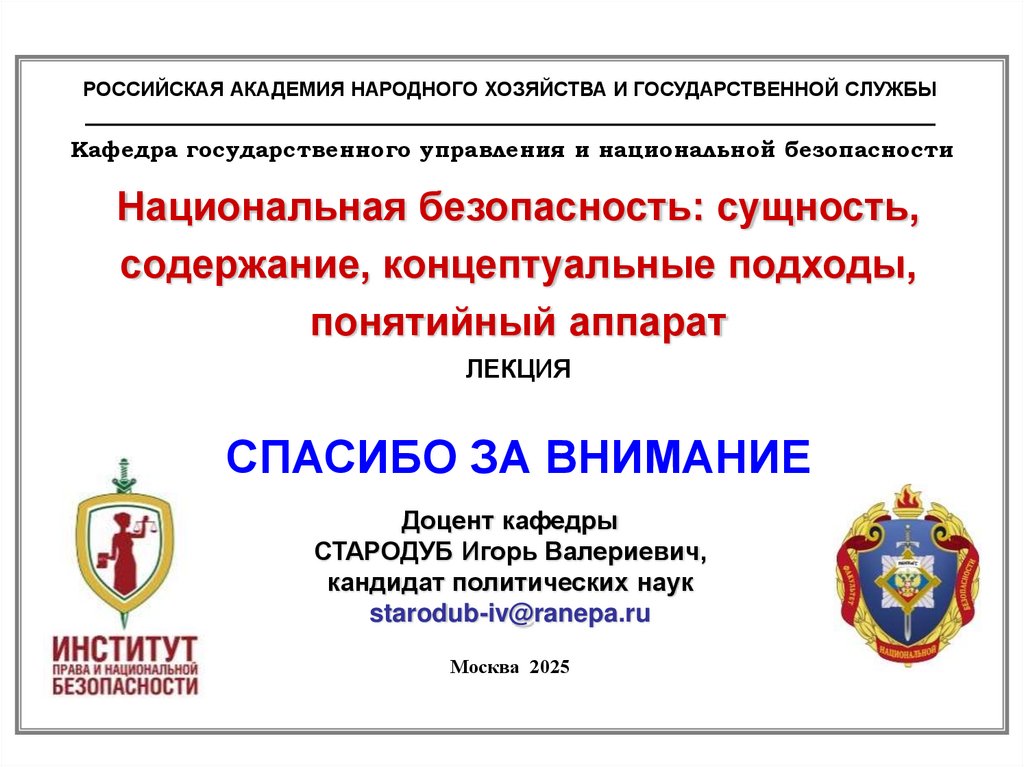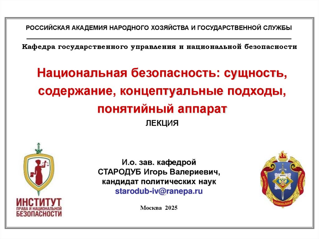 И ПРЕДМЕТТЕОРИИ НАЦИОНАЛЬНОЙ БЕЗОПАСНОСТИ