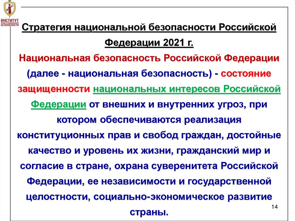 Стратегия национальной безопасности РоссийскойФедерации 2021 г.