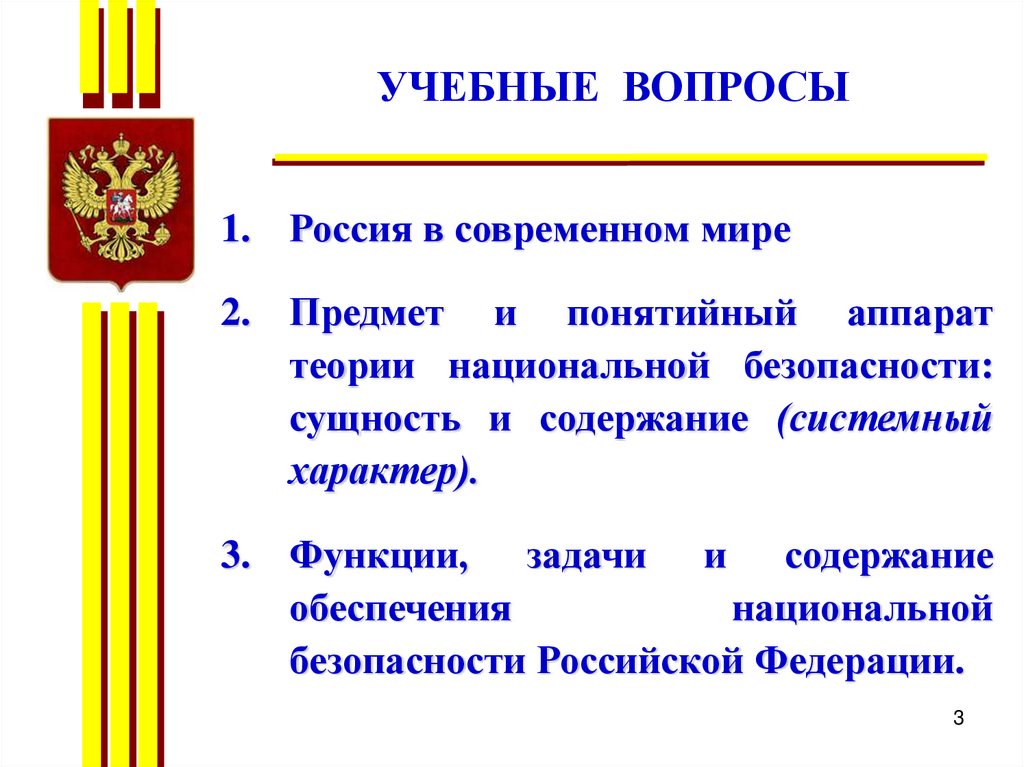 УЧЕБНЫЕ ВОПРОСЫ1. Россия в современном мире