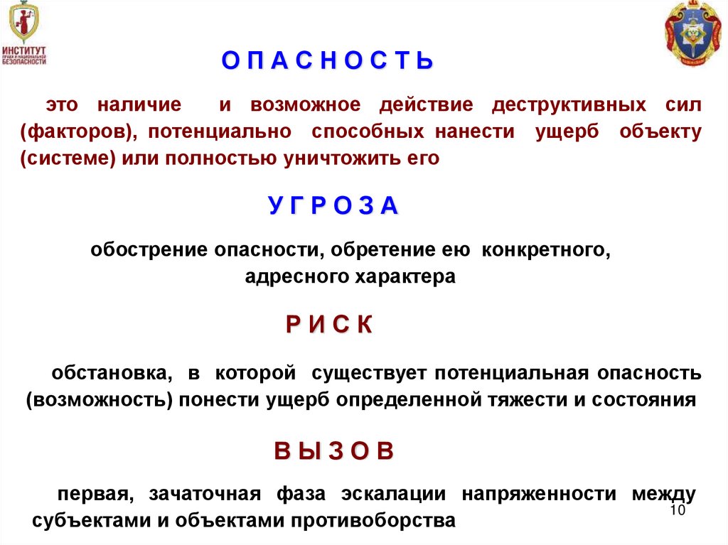 4ОПАСНОСТЬэто наличие и действие деструктивных сил (факторов),