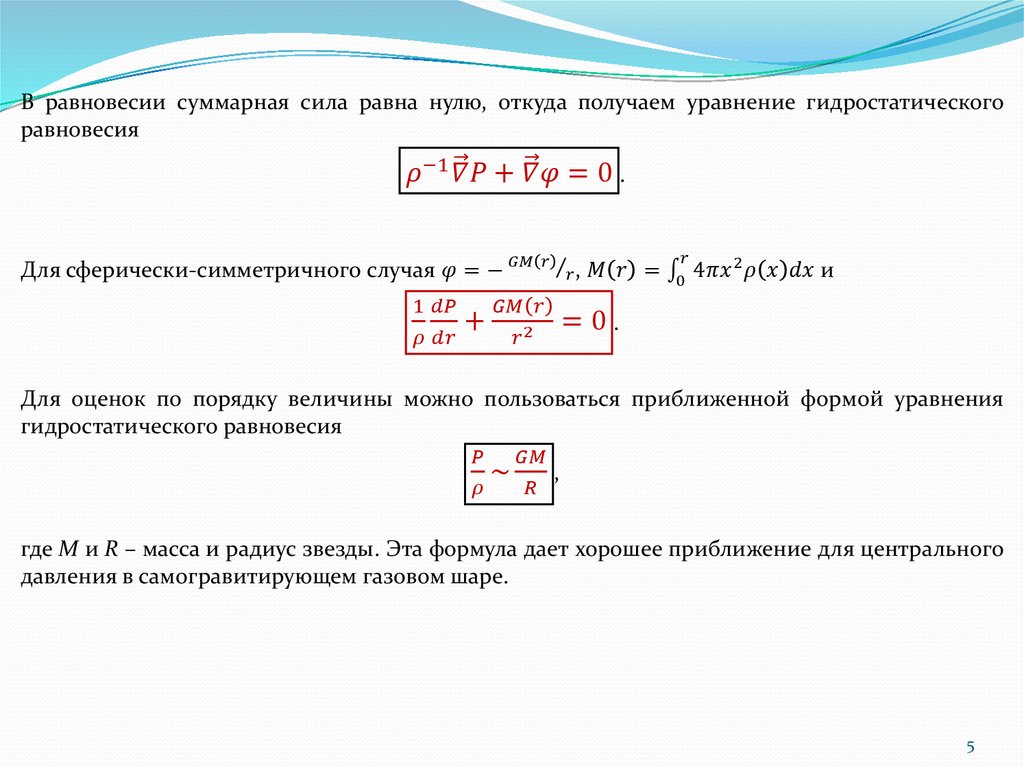 4. Стационарные звезды. Гидростатическое равновесие