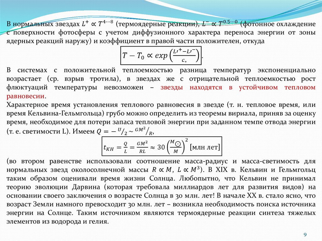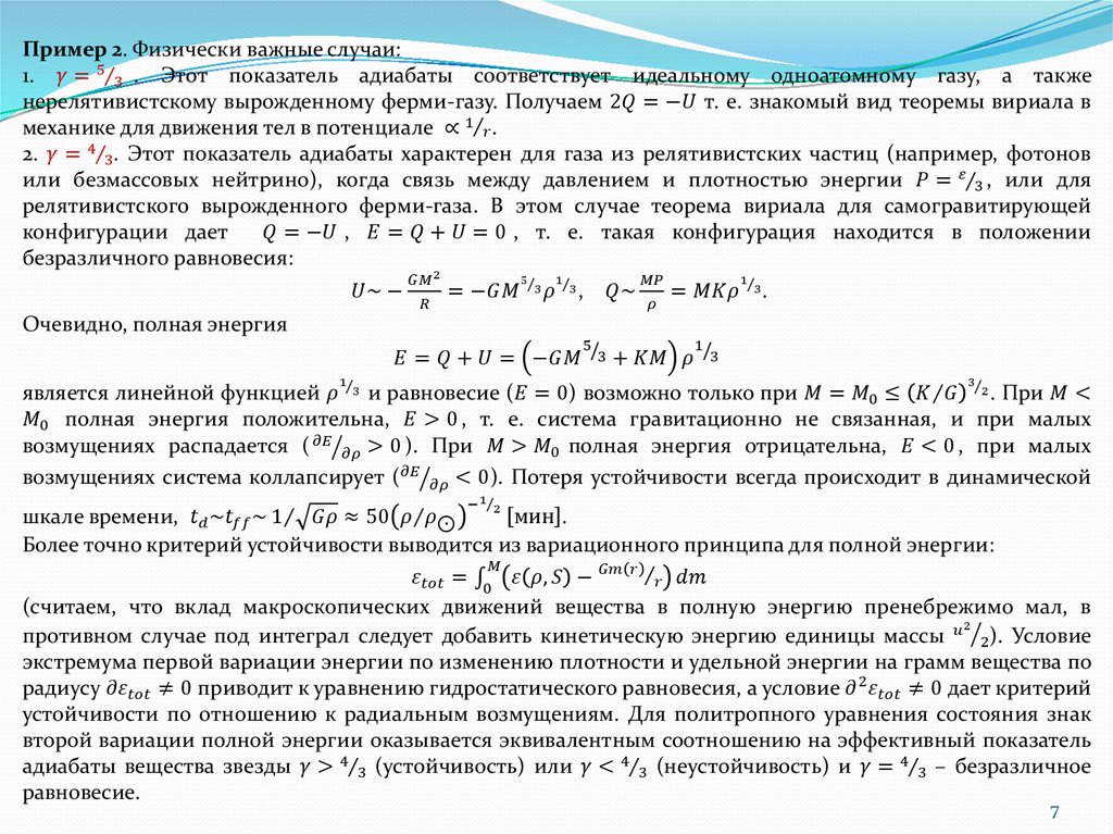 Физическое состояние стационарных звезд определяется условиями гидростатическогоравновесия (когда макроскопические параметры – масса, радиус – изменяются на больших