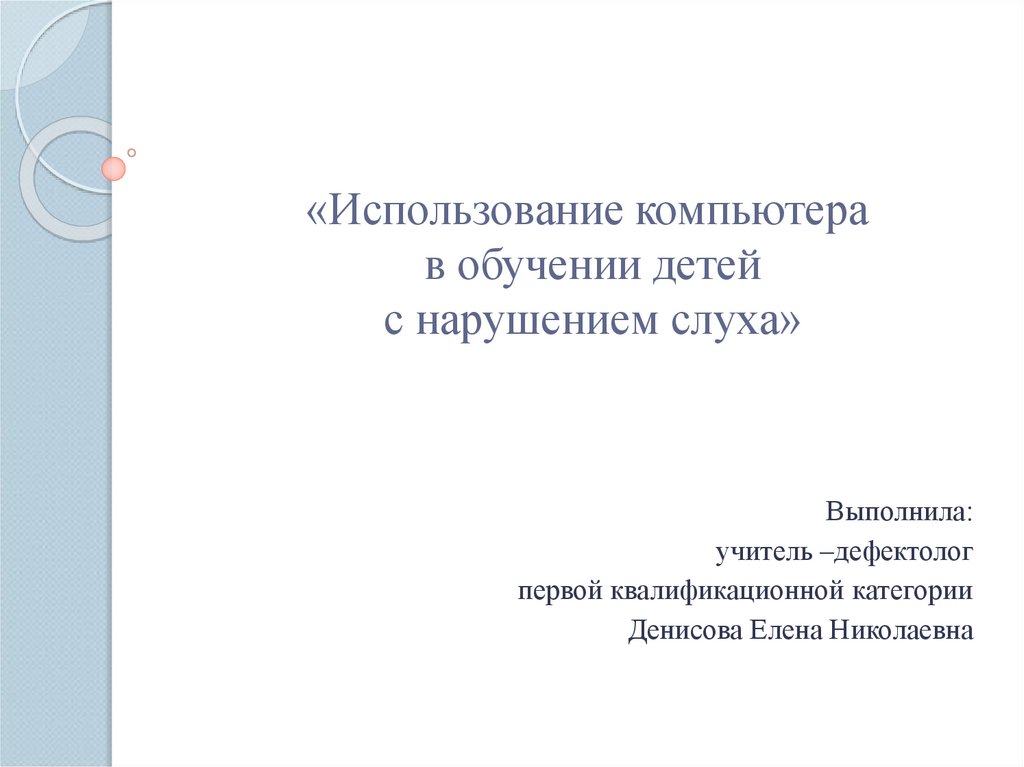 1. «Использование компьютера в обучении детей с нарушением слуха»