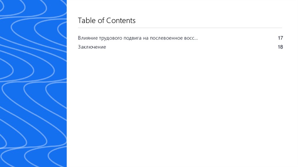Table of ContentsВлияние трудового подвига на послевоенное восс…