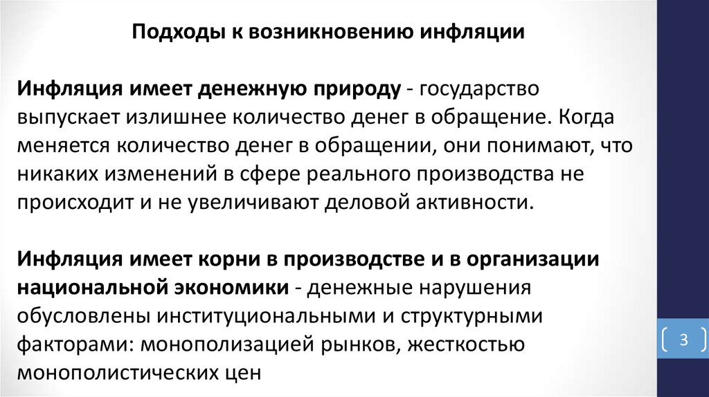 Подходы к возникновению инфляцииИнфляция имеет денежную природу - государство