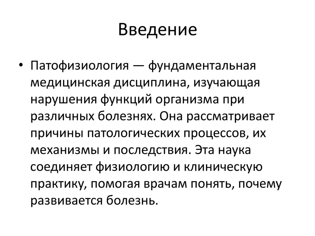 Введение• Патофизиология — фундаментальная