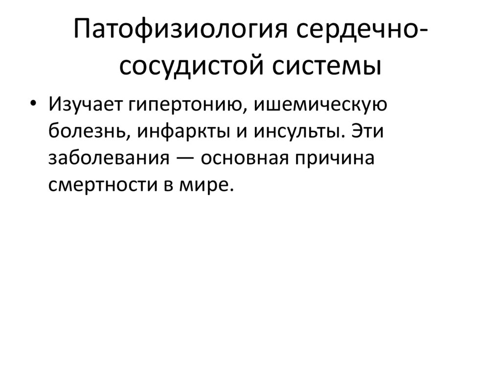Патофизиология сердечнососудистой системы• Изучает гипертонию, ишемическую