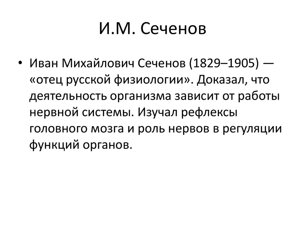 И.М. Сеченов• Иван Михайлович Сеченов (1829–1905) —