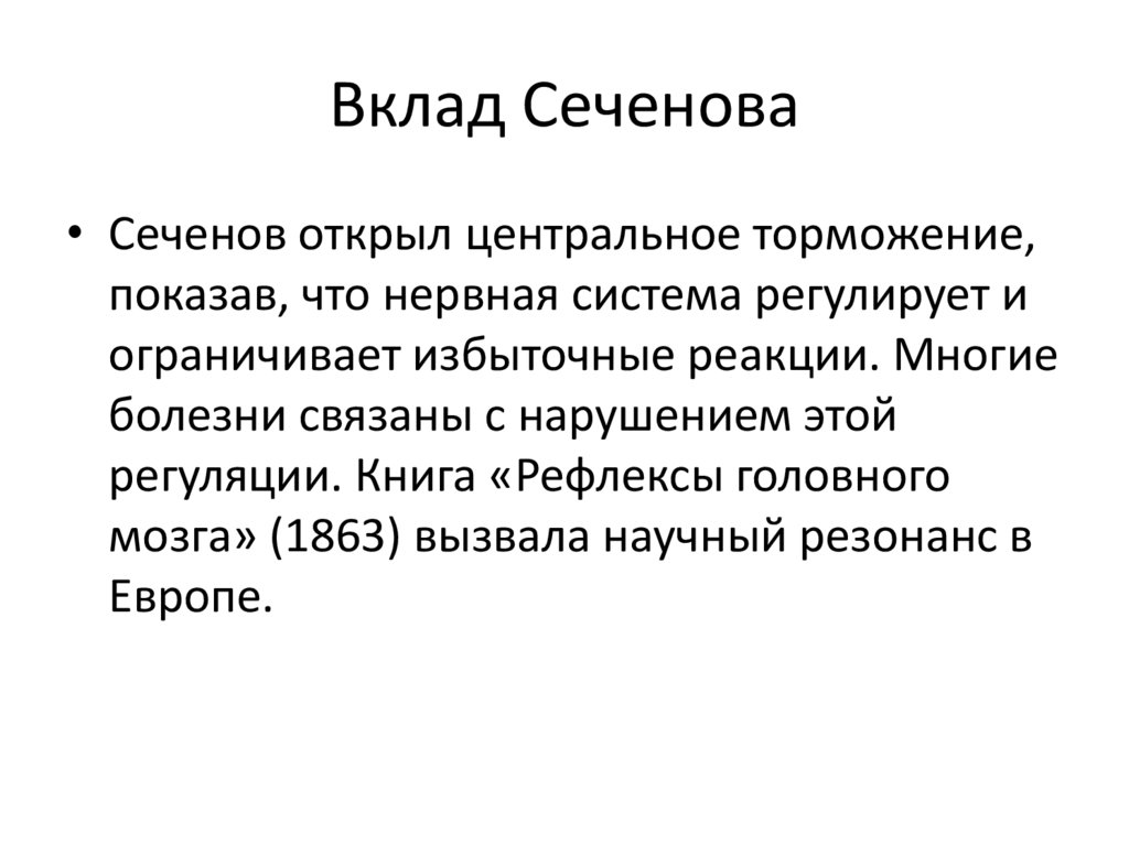 Вклад Сеченова• Сеченов открыл центральное торможение,