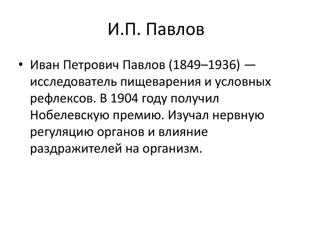 И.П. Павлов• Иван Петрович Павлов (1849–1936) —