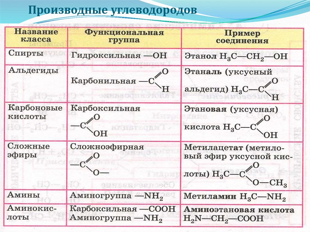 Производные углеводородов15. Органическая химия есть химия углеводородов и их производных, т.е. продуктов, образующихся при замене водорода в молекулах этих