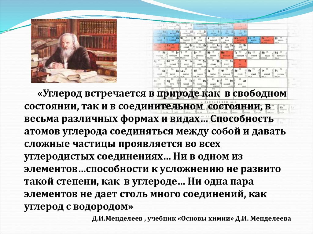«Углерод встречается в природе как в свободномсостоянии, так и в соединительном состоянии, в