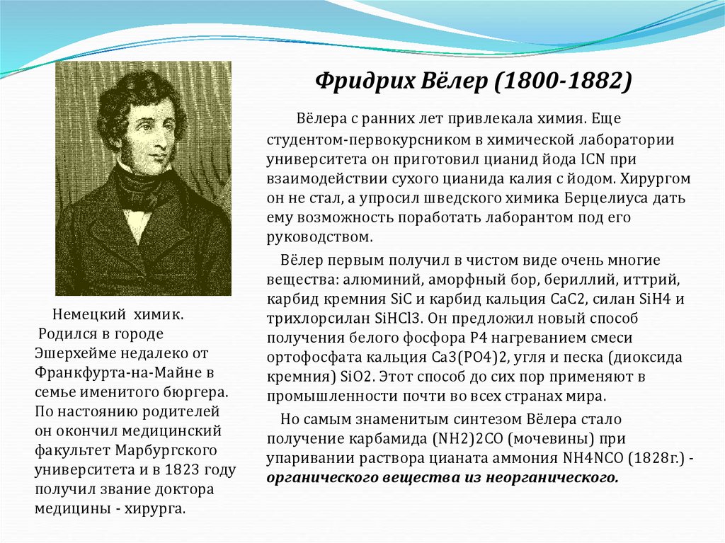 Фридрих Вёлер (1800-1882)Немецкий химик.