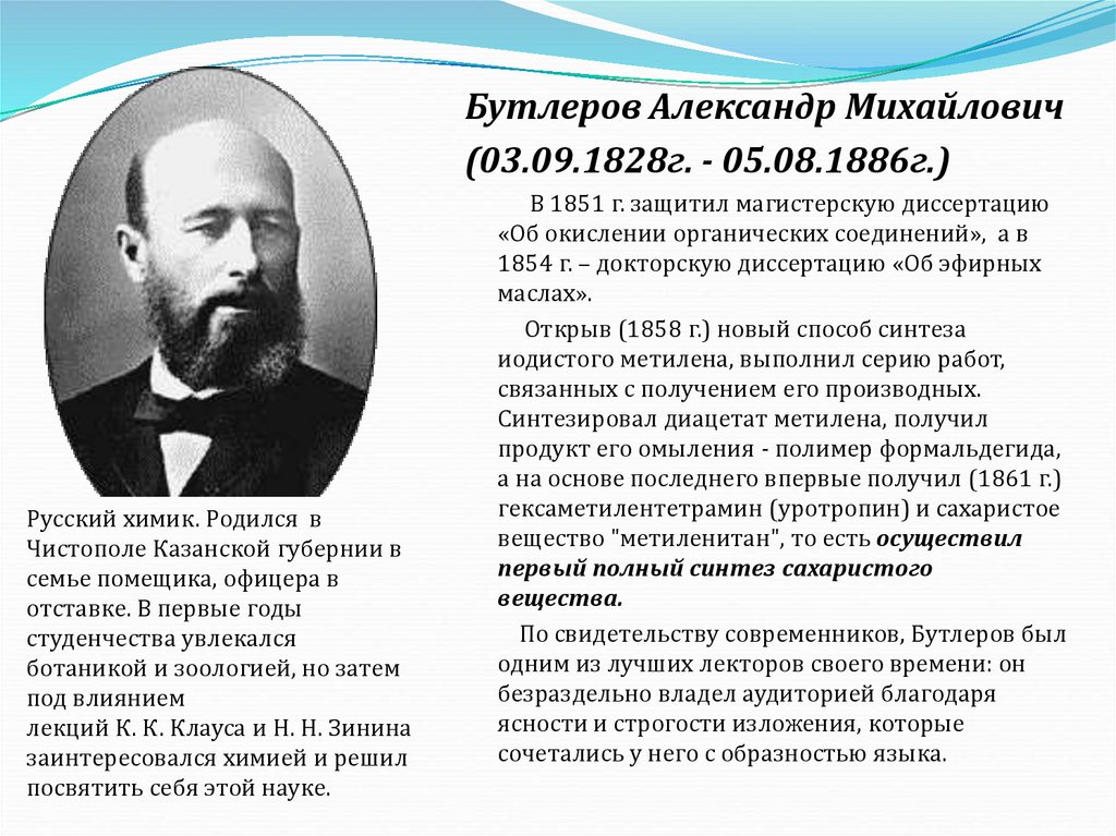 Бутлеров Александр Михайлович(03.09.1828г. - 05.08.1886г.)