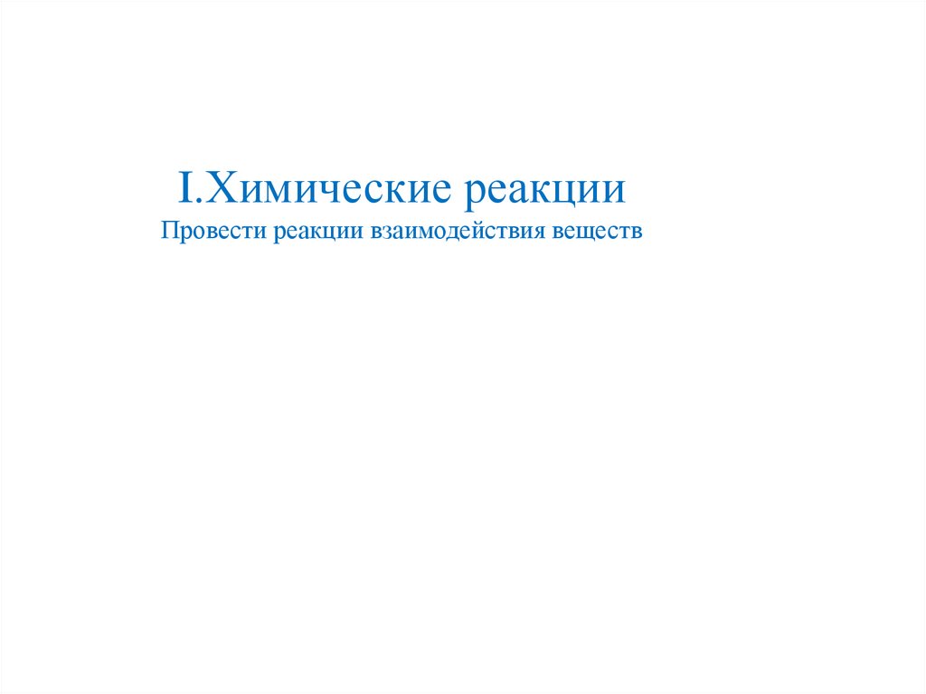 I.Химические реакцииПровести реакции взаимодействия веществ