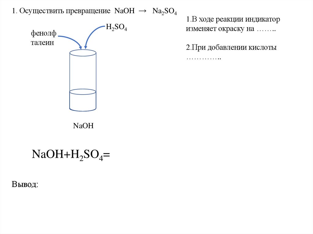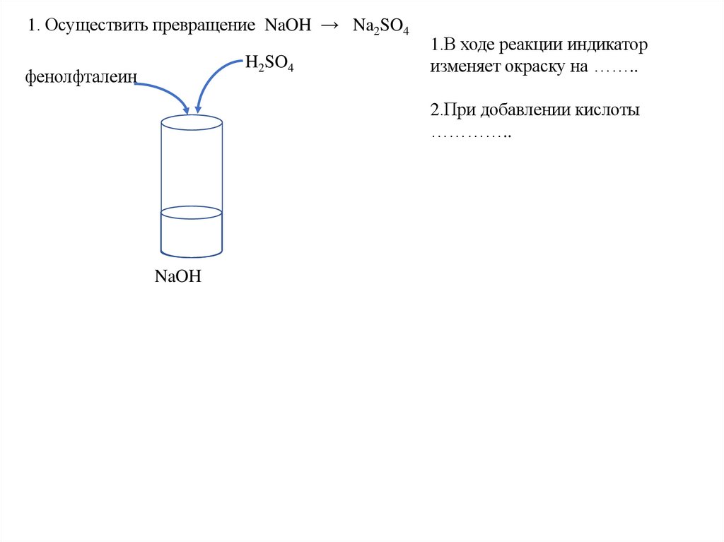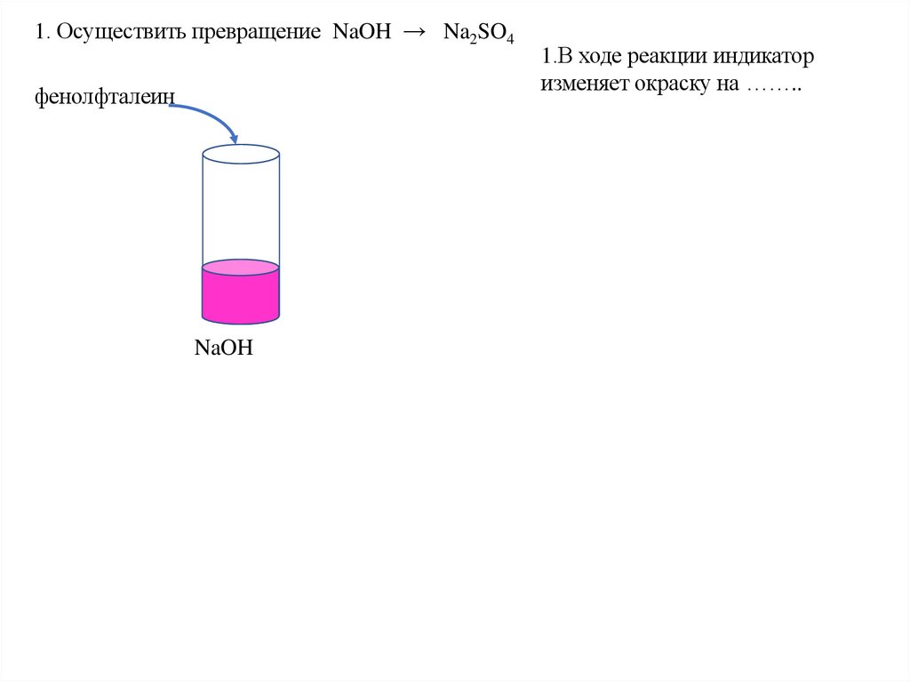 1. Осуществить превращение NaOH → Na2SO4фенолфталеин