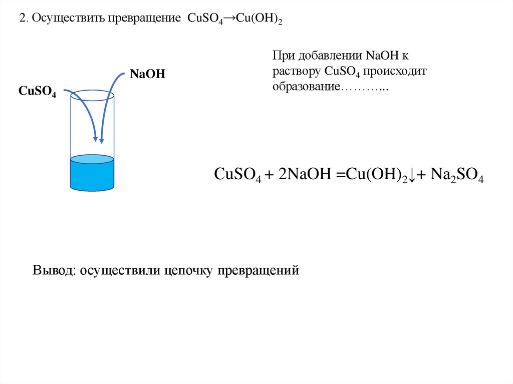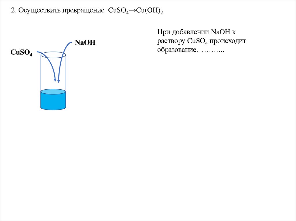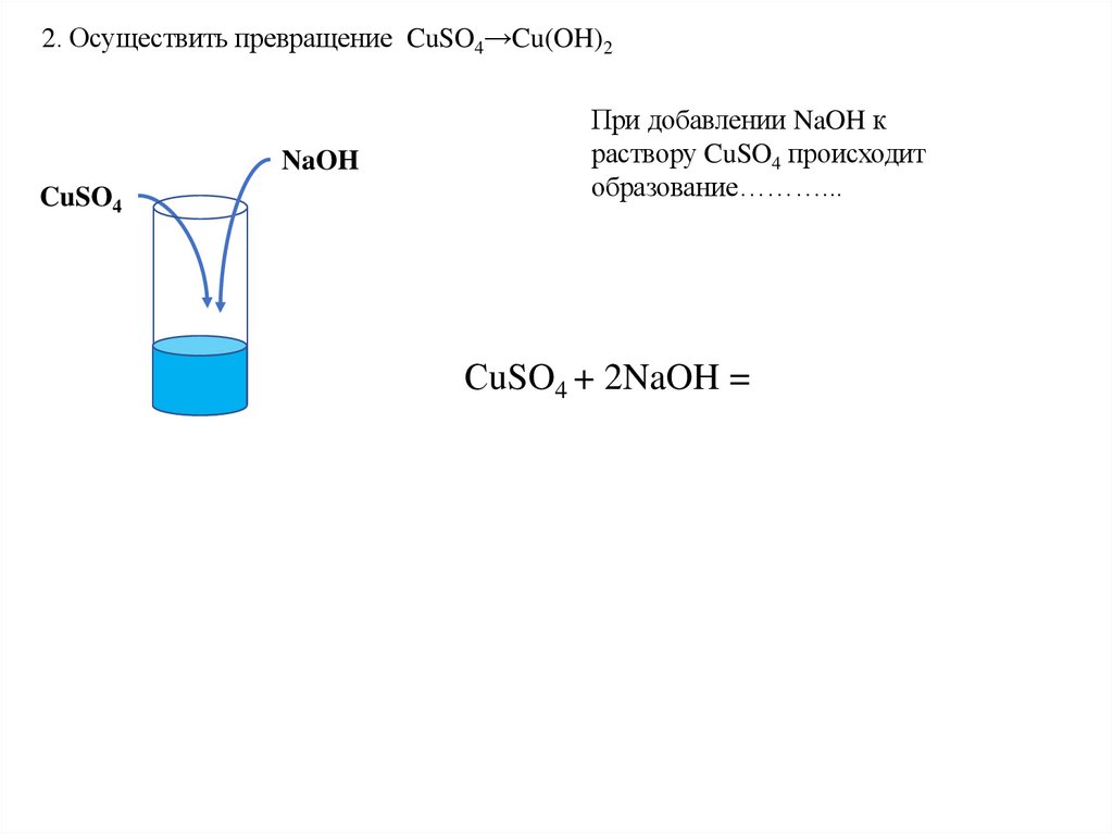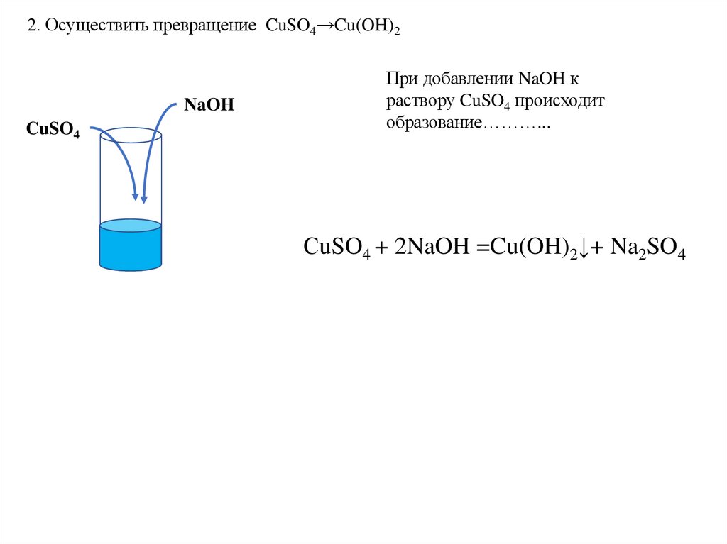 2. Осуществить превращение CuSO4→Cu(OH)2NaOH