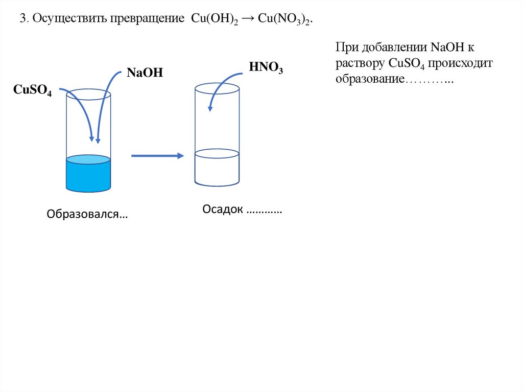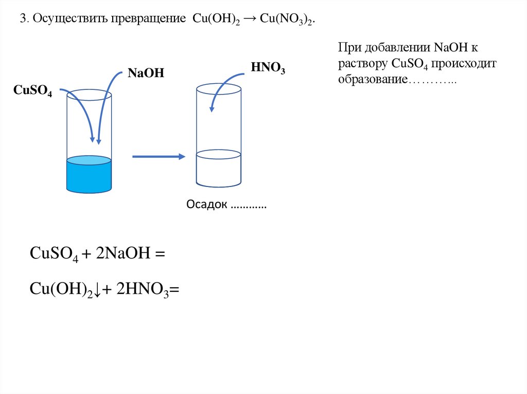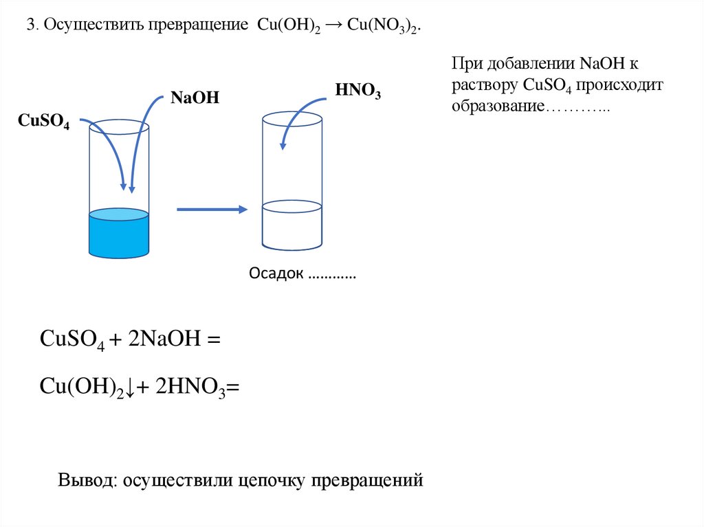 3. Осуществить превращение Cu(OH)2 → Cu(NO3)2.NaOH