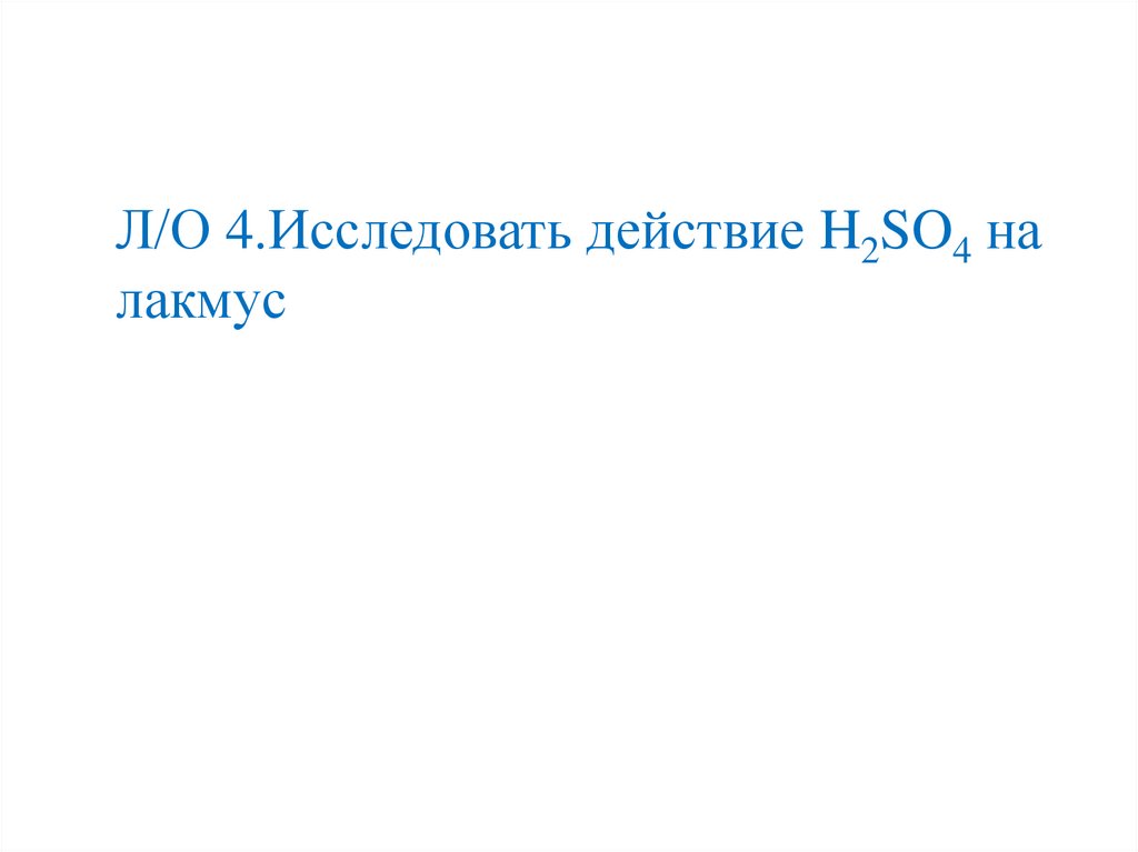 Л/О 4.Исследовать действие H2SO4 налакмус