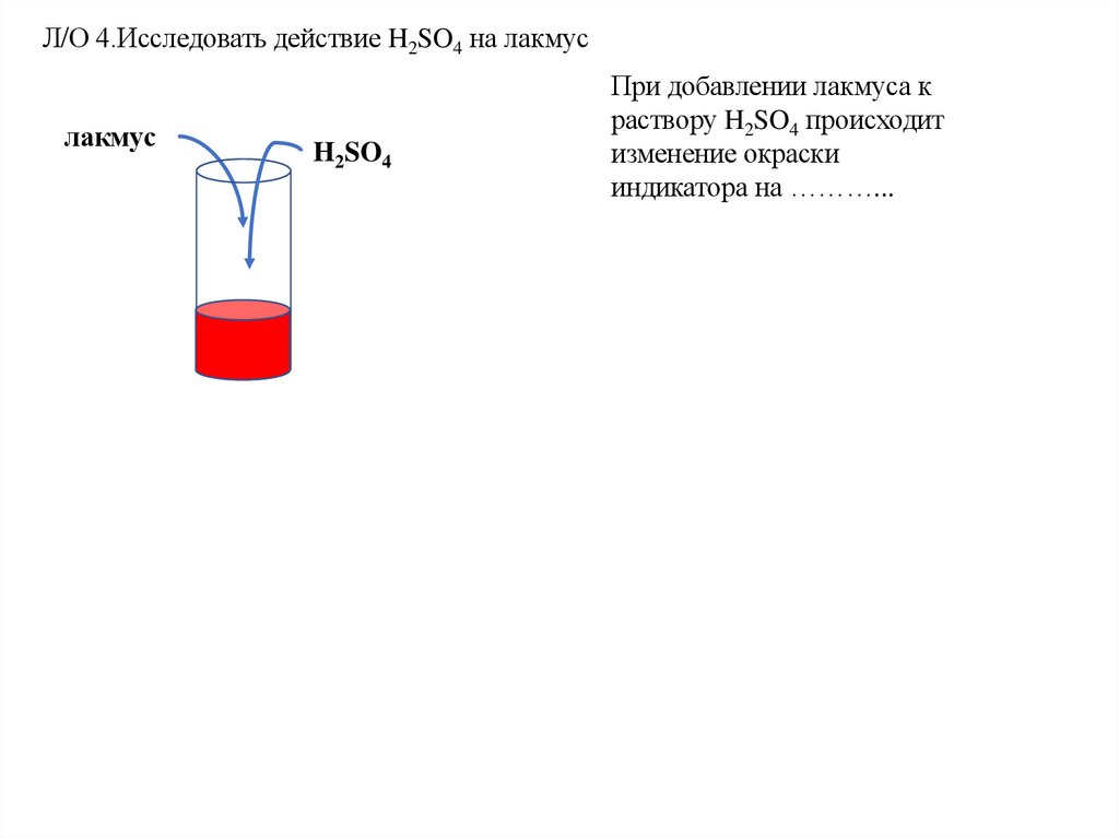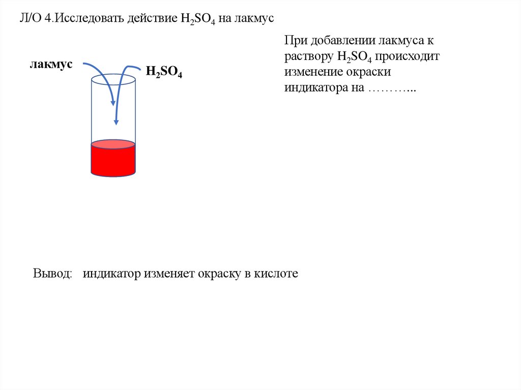 Л/О 4.Исследовать действие H2SO4 на лакмуслакмус
