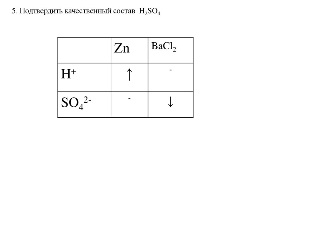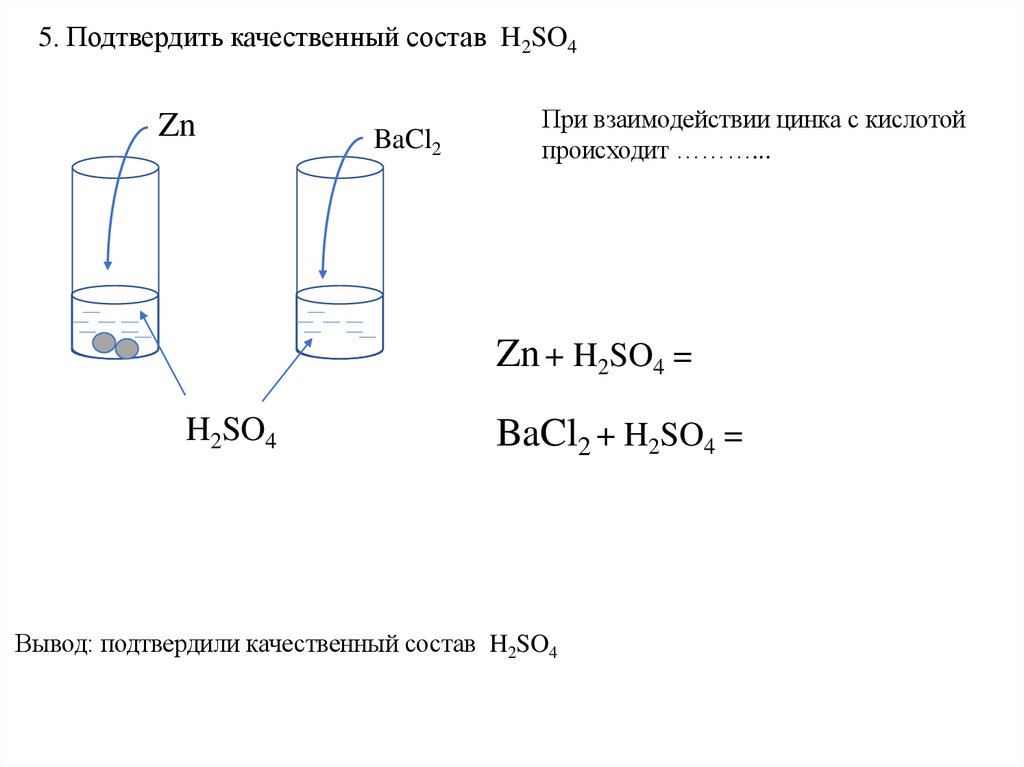 II.Идентификация кислоты.Подтвердить качественный состав серной кислоты