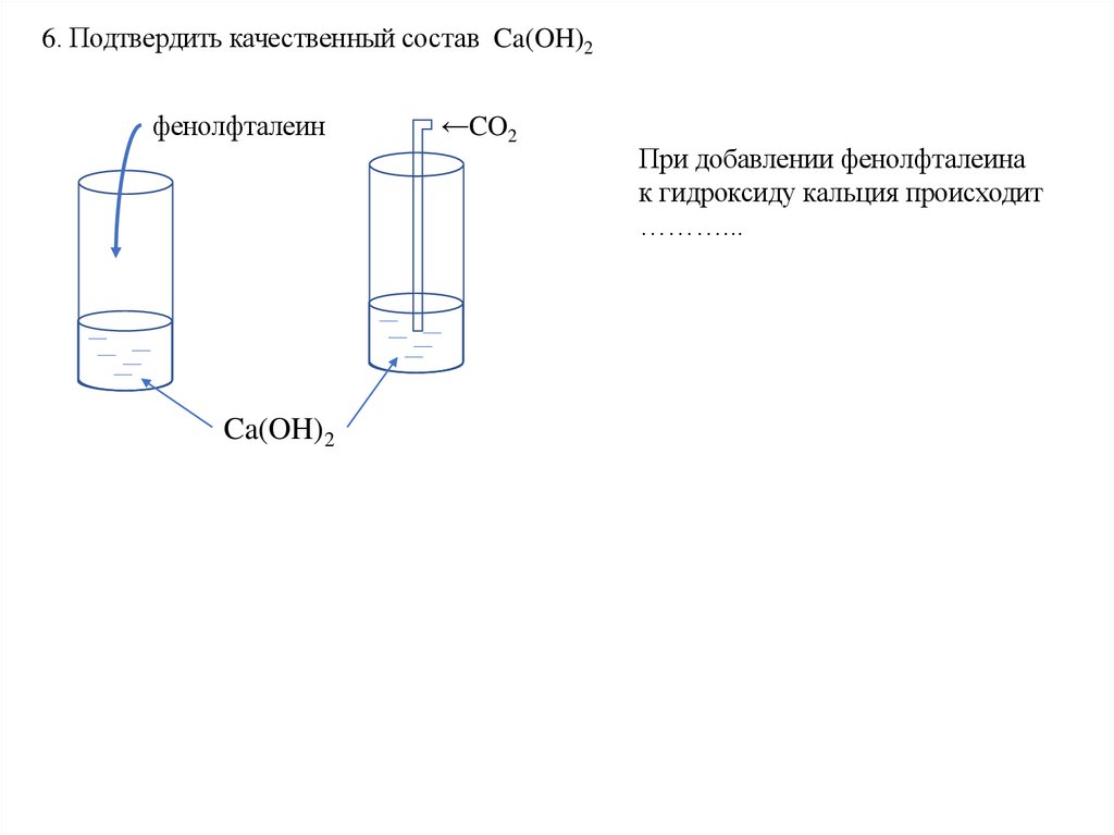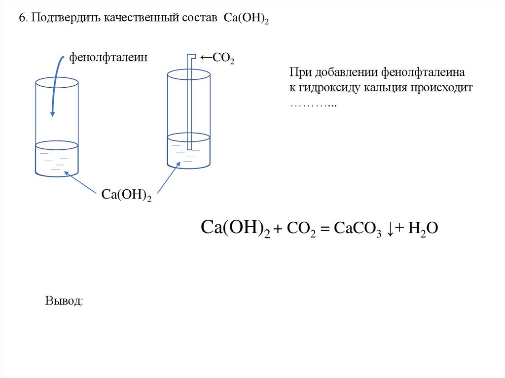 6. Подтвердить качественный состав Ca(OH)2фенолфталеин