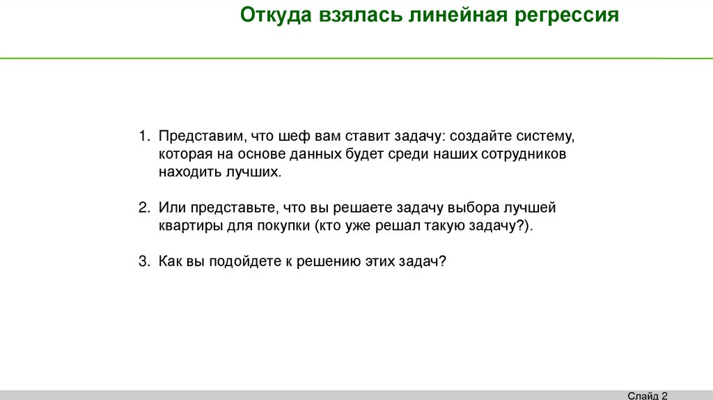 Откуда взялась линейная регрессия1. Представим, что шеф вам ставит задачу: создайте систему,